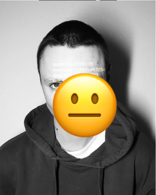 Das Projekt ist entstanden da ich, wie fast jeder andere 19 jährige viel Zeit auf sozialen Netzwerken verbringe. Drei Dinge sind dort allgegenwertig und hatten Einfluss auf diese Arbeit. Selfies, Emojis & vorallem das falsche und teils utopische präsentieren des eigenen Lebens. Tagtäglich posten wir Bilder und verstellen uns vor unserer eignen Kamera bewusst und präsentieren falsche Emotionen. Durch die Zensur mithilfe eines Emojis wird das Foto von der Person distanziert und präsentiert nur noch die erkannte Emotion. Der Fokus liegt nun am Farbenfrohen Emoji und der Ausdruck wird vereinfacht und verständlich gemacht. Der User soll durchs verwenden seiner eigenen Selfies sein eigenens Verhalten selbst einfacher untersuchen und auch verstehen lernen.