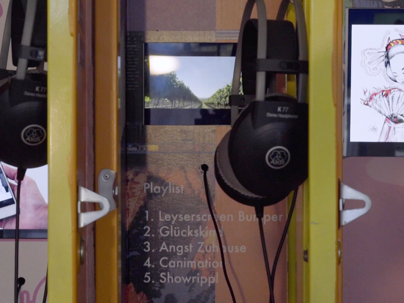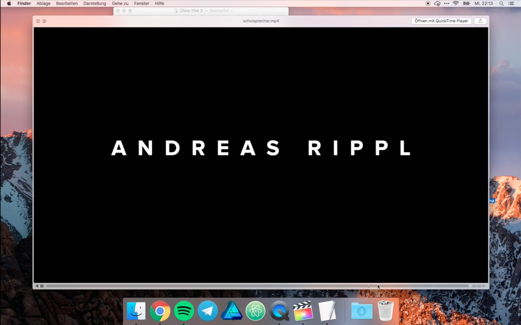 In meinem persönlichen Spind liefen verschiedene Arbeiten aber für diese Ausstellung entstand hauptsächlich ein Showreel in dem ich auch Arbeiten zeigen wollte die keine Videoclips sind. Um das zu bewältigen choreografierte ich einen Screenrecording in dem ich mich à la Youtube Tutorial über Text Edit mit dem Betrachter unterhalte und direkt anspreche. Die Sprache und Referenzen sind alle auf das Setting in der Graphischen angepasst und funktionieren dadurch nicht wirklich universell.